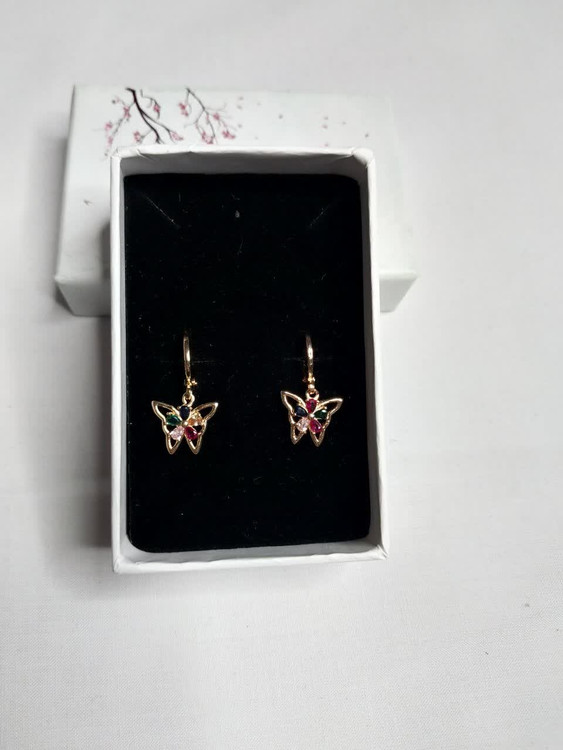 ست گوشواره رنگ ثابت پروانه با سنگ های رنگی .